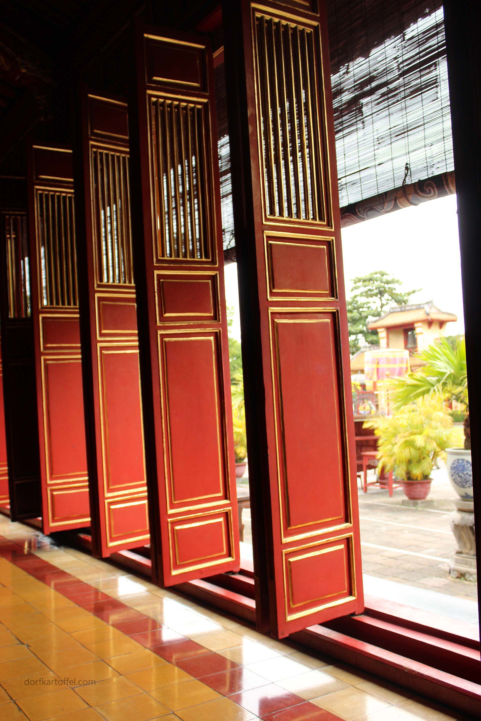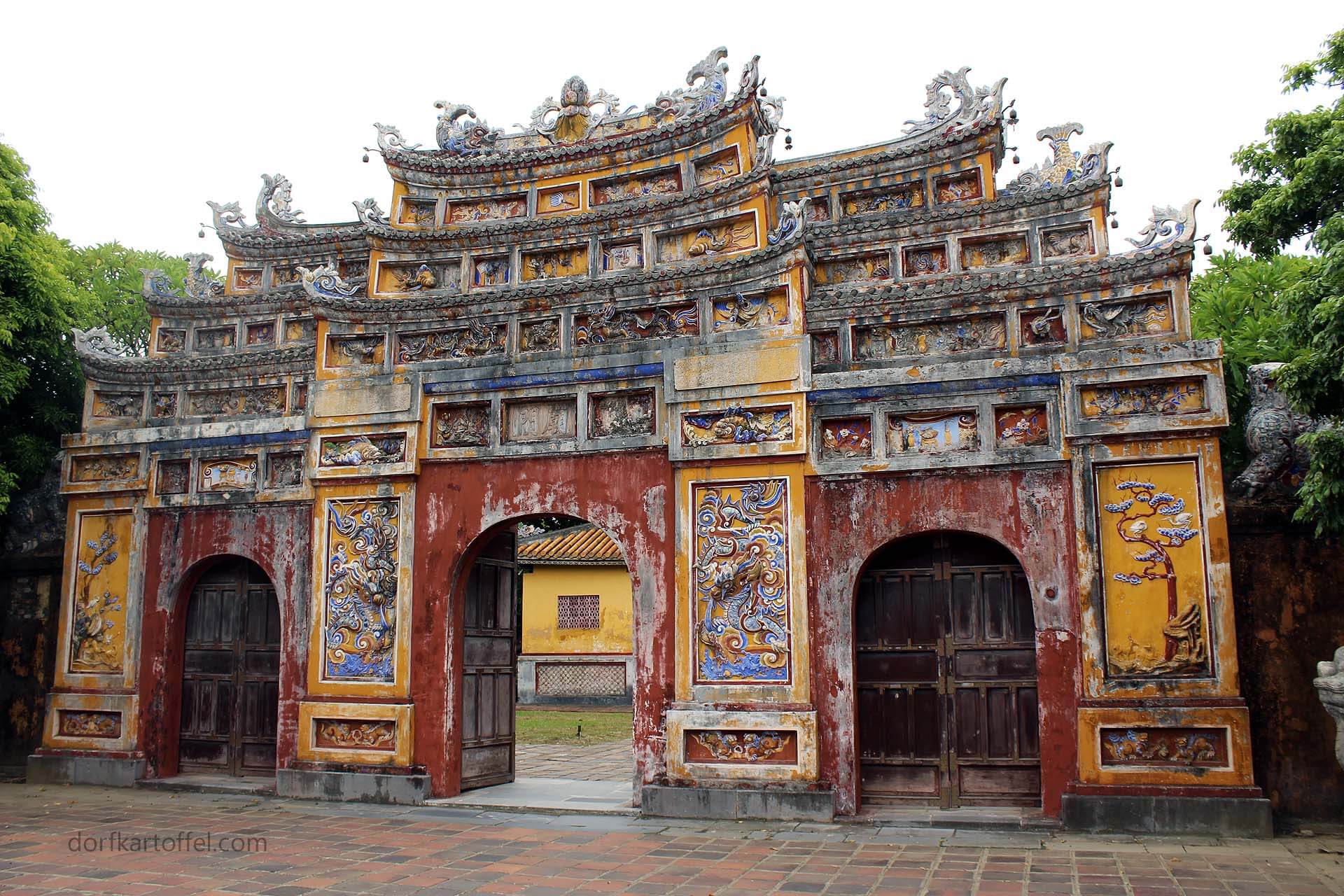 Ähnlich wie die verbotene Stadt in Peking oder andere Palaststädte in Asien, war auch Hue für eine lange Zeit Hauptstadt und Regierungssitz verschiedener vietnamesischer Kaiser. Ich könnte mir jetzt viel Arbeit machen und euch alle mit Namen, Zahlen und Fakten langweilen, aber ich spare mir diese Arbeit einfach. Ich will ja auch kein richtiger Reiseblog sein. Und…ach komm, wenn ich ehrlich bin, interessiert mich sowas als Leser auch nicht wirklich. Wer sich dafür interessiert, kann sich das ja gerne alles auf Wikipedia durchlesen. Für alle, die selbst zum klicken zu faul sind, zitiere ich hier die ersten beiden Absätze: