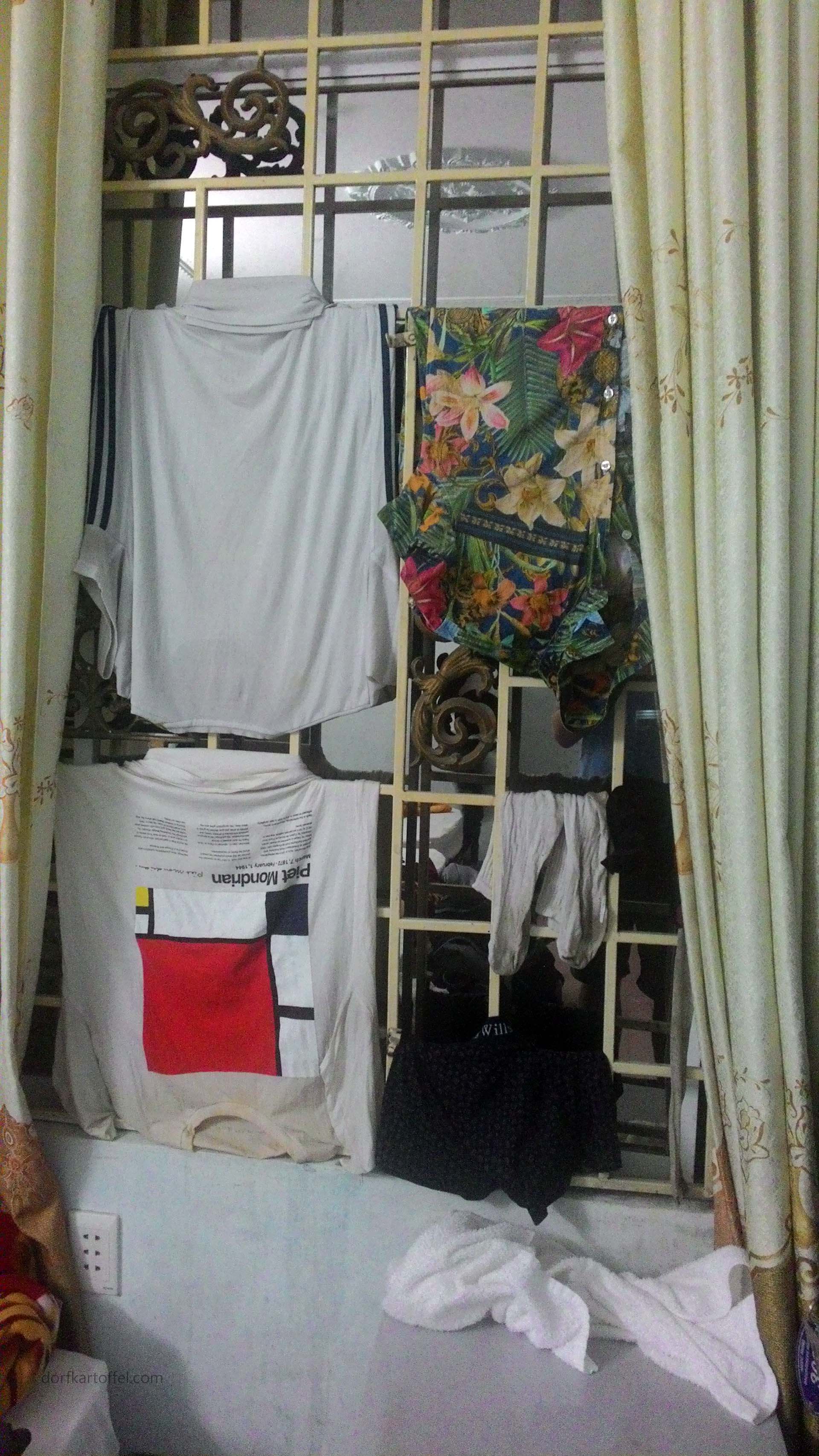 Ich wasche auch mal Sachen aus und hänge sie dann auf, aber entweder nur wenn ich im Doppelzimmer schlafe oder wenn ich die Sachen so aufhängen kann, dass sie niemanden nerven (beispielsweise an meinem Bett). Mr. Scot jedenfalls belagerte mit seiner tropfenden Wäsche das gesamte Fenster, den Spind und, als Krönung, den Ventilator. Ich klinge hier vielleicht empörter als ich eigentlich war, es geht mehr um den skurrilen Anblick und mein Unverständnis gegenüber diesen Menschen. Ich meine…so selbstreflektiert muss man doch sein? Schämen die sich denn nicht?