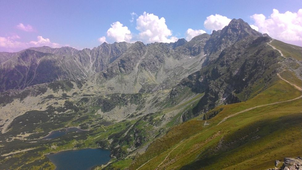 Oben angekommen bot sich uns ein wunderbarer Ausblick über diesen Teil der Tatras. Ich genoß es, nach so langer Zeit mal wieder „richtige“ Berge zu sehen. Wir latschten ein paar Wege dort oben ab und aßen unser mitgebrachtes Brötchen, ehe wir uns nach rund 3 Stunden Aufenthalt wieder auf den Rückweg machten.
